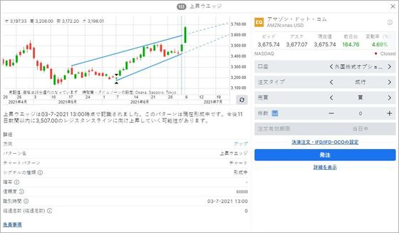■外国証券売買取引は、買付け時に比べて売付け時に、価格が下がっている場合や円高になっている場合に損失が発生します。手数料については、「取引金額×一定料率」又は「取引数量×一定金額」で求めた手数料が一回の取引ごとに課金されます。ただし手数料の合計額が当社の定める最低手数料に満たない場合は、手数料に代えて最低手数料を徴収させていただきます。また取引所手数料等の追加費用がかかる場合があります。■CFD取引および外国株式オプション取引は、元本が保証されない取引です。原資産の価格変動に対する予測を誤った場合等に差し入れた証拠金を上回る損失が発生する場合があります。■取引にあたっては、取引説明書および取引約款を熟読し十分に仕組みやリスクをご理解いただき、発注前に取引画面で手数料等を確認のうえ、ご自身の判断にてお取引をお願いいたします。