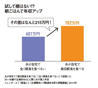 #年収・給料 #コミュニケーション 2011/05/18 0:00 自宅で毎日朝食をとる夫はとらない夫より200万円以上年収が多い プレジデント ファミリー 恐るべし、朝ごはんパワー。「これからは何が何でも夫に食べさせなくては」と思った妻も少なくないのでは? 子供にしても、朝食を食べる子のほうが成績が良いというのはよく耳にする話。良いことずくめの朝ごはん、明日からは親子揃って「いただきます!」。 ランキング 1位 今川義元でも、斎藤道三でも、徳川家康でもない…20代の織田信長が最も信用できなかった"武将の名前" ランキングをもっと見る マネー #年収・給料 #コミュニケーション