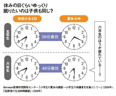 #時間管理 2011/07/18 0:00 夏休みは小5が40分、小6は50分起床時間が遅くなる プレジデント ファミリー 子供たちが心待ちにする夏休みも間近。調査によれば、学校がある通常の日に比べ、休み中は5、6年生ともに就寝時間は10分弱遅くなるだけだが、起きるのは大幅に遅くなる。この起床時間、本人が自発的に起きているのか、親が起こしているのかが気になるところ。 ランキング 1位 中国は81%で世界一高く、日本は34%で世界一低い…両国の人間性・価値観が180度違う事を決定づけるデータ【2025年12月BEST】 ランキングをもっと見る ライフ #時間管理