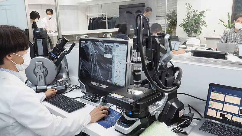 「ここは社内のラボです。日本のタオル企業には置いてないようなデジタル顕微鏡やマイクロスコープを使って、タオルの繊維や素材を分析、研究しているのです」