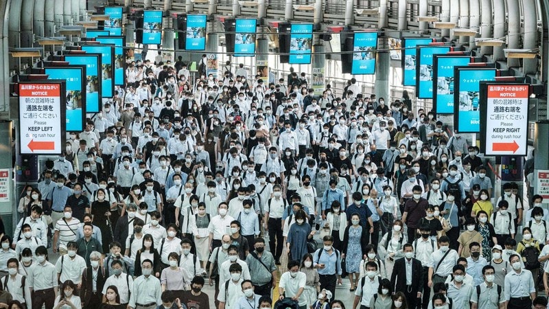 私も拡散された画像を見たひとりだ。「今日の仕事は、楽しみですか。」——と、何枚ものディスプレイにずらりと表示されているその光景は圧巻の一言だった。だれひとりとして顔を上に向けて広告を見ておらず、ややうつむき加減で会社へと急ぐ群衆とのコントラストが相まって、この写真にはひとつの社会風刺的なアート作品としての雰囲気すら漂っていた。