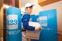 お客様にスタッフ全員でご挨拶した後、早速作業に取りかかった。壁やコーナーを傷つけないよう養生し、荷物をトラックまでバケツリレー方式で運び下ろす。荷物の重さは覚悟していたが、想像以上にスタッフの動きが速い。それでいながら周囲にぶつけたり壊したりしないよう、荷物の扱いは丁寧だ。