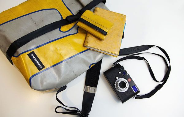 視察では風景から食事まであらゆるものを記録するのでカメラが必需品。バックパックや財布は、丈夫で使いやすいスイスのブランド「フライターグ」のものを愛用。素材にはトラックの幌などが再利用され、環境性の高さにも共感しています。
