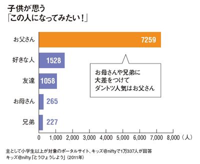 #女性・OL・主婦 2012/01/14 9:00 誰かと1日入れかわるなら子供の希望はお父さん70%、お母さん3% プレジデント ファミリー 家庭における父権いまだ健在か。いや、遊び担当はもっぱら父親、しかも酔っぱらって帰宅したり休日遅くまで寝ていたりと案外ラクで楽しそうに見えるのかも。とすれば母親の不人気も納得。家事や子供の世話に追われるお母さんこそ、1日お父さんになってみたい? ランキング 1位 秀長はNHK大河で描かれるような「いい人」だったのか…奈良の居城に埋め込まれた"200の地蔵"が示す傍若無人 ランキングをもっと見る ライフ #女性・OL・主婦