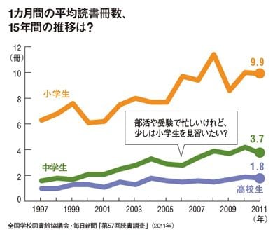 #モチベーション 2012/01/14 14:00 1カ月の読書冊数は、小学生10冊、中学生4冊、高校生2冊 プレジデント ファミリー ブックスタートや「朝読」の影響か、ここ10年ほど子供の読書量が増えている。顕著なのは小学生で、中学、高校と進むにつれ本から遠ざかる。翻って我々大人も、電車などで本より携帯電話に見入る姿が増えた。子供に読書を勧めるなら、まずは己を改める必要がありそう。 ランキング 1位 食事前に胃に入れておくだけで血糖値の急上昇を防げる…専門医が「常備」を勧める手軽な食材4つ【2026年1月BEST】 ランキングをもっと見る キャリア #モチベーション