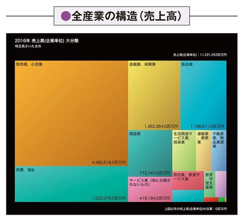 例えば、ある市では、今後人口構成がどのように変化するのか。製造業の売上高が全産業の中でどれくらいの割合を占めているのか。地域内のお金の流れがどのようになっているのかなどを簡単につかむことができる。
