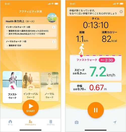 今回、入山教授には、カシオ計算機とアシックスの共創事業によってリリースされたスマートフォン向けウォーキングアプリ「Walkmetrix(ウォークメトリックス)」を使っていただいた。通常の歩行よりも速い時速5~7km程度のスピードと歩幅を意識した質の高いウォーキングを、ファストウォークと称して提案している。