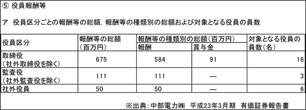 「次に中部電力を見ると、報酬の総額が6.7億。支給対象の役員数が16人だから、一人あたりの支給額が約4218万円だ」
