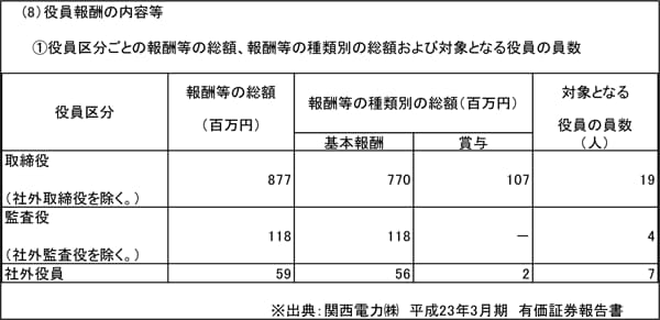 「関電の場合、報酬の総額が8.7億で支給対象の役員数が19人とあるから、一人あたりの支給額が約4615万円となる」