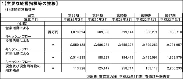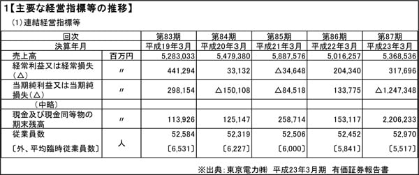 なぜ東電はラッキーだったのか。そのヒントは『第1【企業の概況】1【主要な経営指標等の推移】』に隠されている……と佑真は説明を始めた。