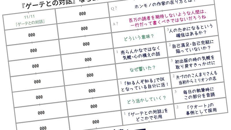いずれにせよ、そこで一時的に感動してお終いとするのではなく、そのインパクトを言語化しておきたいのです。後で再現できるように、引き出せるように思考整理しておく。