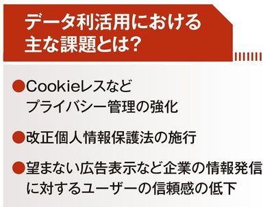 インターネット広告などで活用されてきたCookieやデバイスIDにおけるプライバシー管理の強化が進み、改正個人情報保護法の施行もあって、企業によるデータの取り扱いに関して一層のケアが求められています。皆さんの関心は、外部から提供されたCookieなどのデータ(サードパーティデータ)に頼る手法から、ユーザーの同意を得て自社やグループ企業が直接取得したデータ(ファーストパーティデータ)による高精度な情報発信へと移っていると感じます。
