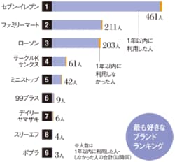 ※プレジデント編集部で全国の1000人を対象にアンケート調査を実施。消費者にとって身近な小売り・サービスの22部門において、いまもっとも好きなブランドを選んでもらいランキングした。回答者は男女各500人、20~60代の各200人。(2010年・雑誌掲載当時)