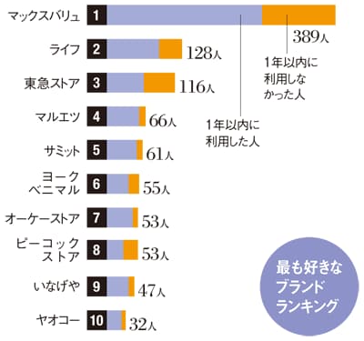 ※プレジデント編集部で全国の1000人を対象にアンケート調査を実施。消費者にとって身近な小売り・サービスの22部門において、いまもっとも好きなブランドを選んでもらいランキングした。回答者は男女各500人、20~60代の各200人。(2010年・雑誌掲載当時)