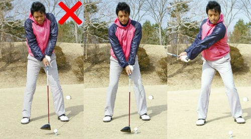 脱力した状態でアドレスしてスウィングすれば、ヘッドの重さを感じられ、ヘッドスピードを上げられる。上半身に力が入っているほどヘッドスピードを上げられない。