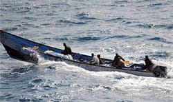 人質を乗せて逃げるソマリアの海賊船(2011年9月:PANA=写真)。