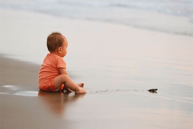 【岩本】受賞作品を決める社内投票に参加した1000人超のうち圧倒的多数が今回グランプリに選出された「いのちのたび」を支持しました。大海へ向かって力強く歩みを進めるウミガメの赤ちゃんと、その姿を見つめる人間の赤ちゃん。この二つの小さな命の未来には大きな試練があるかもしれませんが、どうかたくましく生きていってほしい。彼らの健やかな成長を願い、思わずエールを送りたくなる作品だと思います。当社が2001年に制定した環境憲章の基本理念には「かけがえのない地球環境を次世代に継承する」とあり、「いのちのたび」は、このような当社の環境に対する理念や思い描いていたイメージともピタリと一致しました。当社の総意が皆さまにも認められたということは大変喜ばしく、また名誉に感じています。