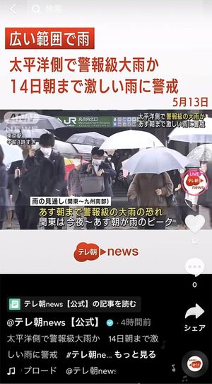 【今井】そうしてもらえると、テレビなどがない環境でもすぐにリアルな情報を得られますね。TikTokでは2020年8月から国内外の大手メディアと連携してニュースを届ける「#TikTokでニュース」も開始しています。中には100万超のフォロワーを持つアカウントもあり、台風や津波、土砂災害の情報発信でも力を発揮しています。わずか4分でテレビ放送を加工した動画を配信している放送局もあります。