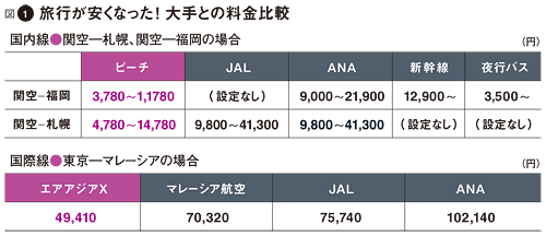これら先行組が国際線限定の外資系LCCであるのに対し、12年就航を開始する3社は、それぞれJAL、ANAが出資し、国際線だけでなく国内線も飛ばす。それも関空や成田から札幌、福岡、沖縄というドル箱路線だ。