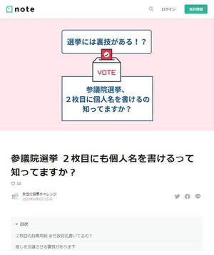 女性議員を増やしたいならば、2枚目の投票用紙に女性候補者の名前を書けばいい。天野さんはこの「2枚目」に着目し、ツイッター、インスタグラム、ティックトックなどのSNSを通じ、「#女性に投票チャレンジ」「#2枚目は女性」の2つのハッシュタグで投票を呼びかけ始めた。