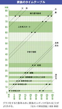 3つ目に、私は必ずご家族のタイムテーブルを書いてもらっている(図参照)。家を建てる時点での家族構成や年齢にぴったり合うようにつくり込んでしまうと、早ければ5年で住みにくい家になってしまうことさえある。人間は必ず年をとるものだからだ。