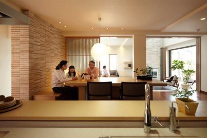 キッチンからダイニング、リビング、ベランダまで見渡せる大空間。家族みんなが心地よく過ごすことができる。