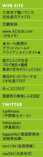 それより誰か信頼できる人が優先順位をつけてくれたものを読むほうがいい。ということは、誰のブログでもいいというわけではなく、「どんな人が書いているか」が重要。直接当人を知っているのでなければ、内容をよく吟味する必要があります。その代わり、「この人なら間違いない」と思えるブロガーが見つかったら、自分の代わりにいろいろなものを見聞きし判断してくれる、もうひとつの目や耳ができたようなもの。