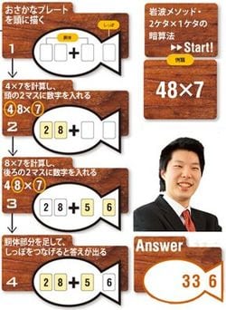 「岩波メソッドゴースト暗算」。インド式では19×19までを単に暗記するが、ゴースト暗算ではその名の通り、丸覚えではなく暗算するという画期的なメソッドだ。