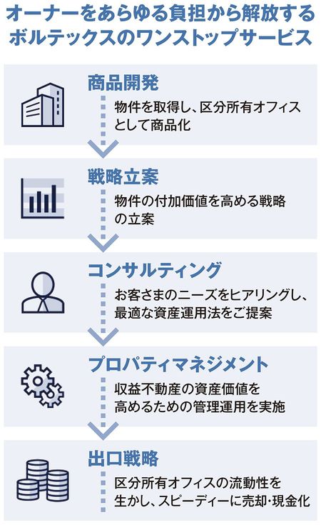 その実現に当たり、不動産の保有は合理的な財務戦略と考えており、資金的なハードルを下げた「区分所有オフィス」を提案してきた。そして、多くの物件を販売・管理してきた経験から意識しているのが、オーナーの御用聞きにはならないことだという。