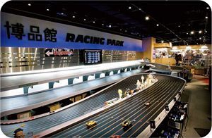 銀座に本店があるおもちゃ専門店・博品館TOY PARKがオープンさせた「博品館TOY PARK 羽田空港店」には、全長約50メートルの日本最大級のスロットカーサーキットがあり、5分間、車の走行ができる。