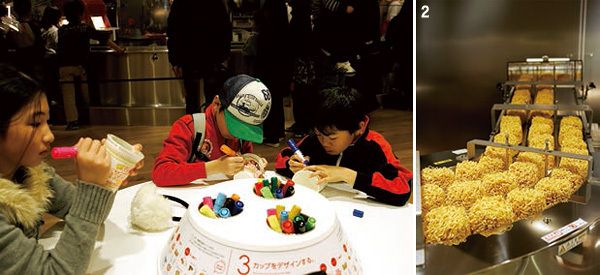 スープと具材の組み合わせで、なんと5460通りにもなる「マイカップヌードルファクトリー」。はじめにカップに絵を描くので、世界で1つだけのカップヌードルを持ち帰ることができる。