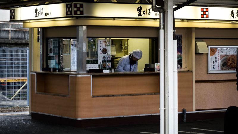 駅のホームの立ち食いそば店