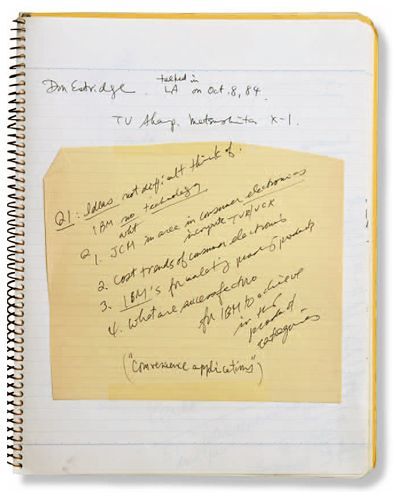 振り返れば思い出深いメモもある。写真は84年10月8日にIBMのパーソナルコンピュータ(PC)開発の総責任者だったドン・エストリッジと会ったときのメモだ。