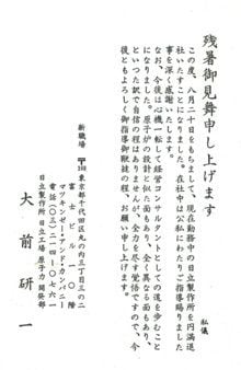 1972年8月、大前さんが知人に送った転職挨拶のハガキ(一部を編集部で加工してあります)。