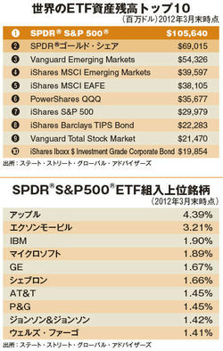 「SPDR®S&P500®ETF」は1993年にニューヨーク市場に上場した米国初のETFだ。現在、世界に上場している中で、最も歴史のあるETFとして広く支持されていて、その規模は世界最大を誇る。2012年3月末の純資産残高は9兆円弱、世界で1日に取引される金額は約1兆6000億円と圧倒的スケールだ。