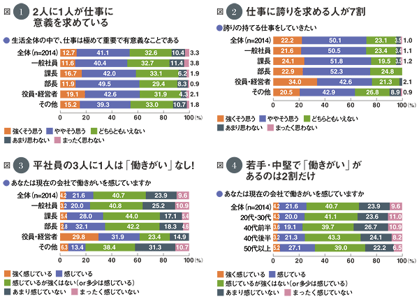 給料は増えず、ポストは減り、雇用やキャリアに対する不安も大きい。こんな希望のない環境の中で人々が感じる「働きがい」や「働きやすさ」はどんな風になっているのだろうか。