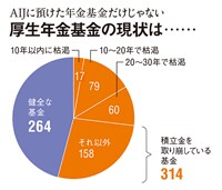 AIJに預けた基金だけでなく、厚生年金基金の多くが積立金に大きな穴をあけている。掛け金では年金の給付をまかなえず、積立金を取り崩している基金は314、10年以内に積立金が底をつく基金は17も。積立金がなくなると、給付減額、掛け金引き上げなどで当該企業や従業員の負担となるが、企業破綻を避けるため税金による救済の可能性も。