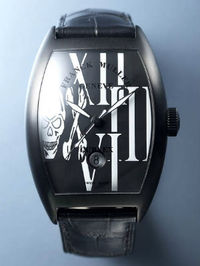 「ゴシック・アロンジェ ノアール」。ヨーロッパでは人生の象徴とも見なされるドクロを大胆にデザイン。時間と向き合うフランク・ミュラーらしい発想が光る新作。