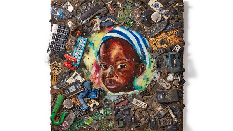 この現実に目を背けてはならない。だが、一介の絵描きにすぎない自分に、何ができるのか。辺り一面を覆う煙にせき込みながら、電子ゴミを使ってアート作品を作り、その売り上げを彼らに還元できないか、とひらめいた。