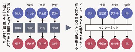 組織の時代から個の時代へ。これはいわば「原点回帰」である。大新聞という権威が崩れ、その発信する情報への信頼が揺らぐ一方、立脚点を明確にした個人の情報発信への信頼が高まっている。個人が発行する有料メールマガジンも広がり、月1000円ほどの情報料で1000人以上の会員を集めるジャーナリストも出てきている。