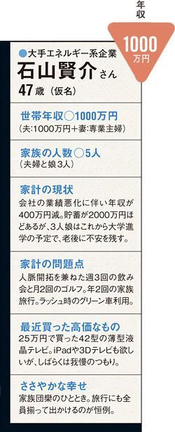 これが大手エネルギー系企業でコンサルティング業務に従事する石山賢介氏(仮名、47歳)の現況である。身なりに派手なところはない。ピンストライプのスーツとナイロン製の鞄は実用性の高さから選ばれたのだろう。澱むことなく的確に家計の実態を説明する様子からも、実務能力の高さがうかがえた。
