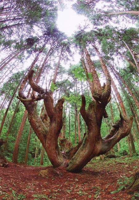 佳作の「森のしづく」は、森、空、水が映り込んだしずくと、背景の緑のコントラストにより、森の美しさと力強さが見事に表現された作品。もう一方の「復活の木」は、伐採のたびに幹から萌芽が生まれたことでできたものであり、この一本の木だけで森が再生可能であることを体現しています。
