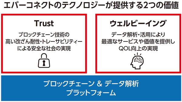 エバーコネクトの根本にあるのは、“技術によって人と人をつなぎ、より良い社会づくりや人々の幸福に貢献したい”との思いだ。ブロックチェーンは、それを実現するための信頼性の高い手段というわけである。
