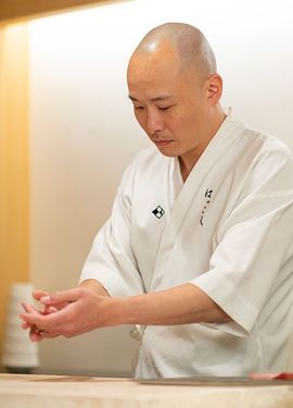 1978年、東京都生まれ。グローバルダイニングでウエーターや店長を経験しながらサービスのプロを目指す。実家が鮨店だったこともあり、25歳で鮨職人の道へ。都内の鮨店で修業後、銀座「鮨 とかみ」で大将を務め、マグロを極める。2018年に独立。「はっこく」を開店。