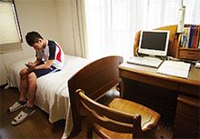 すっきりと片付いた自室。「最近は、ほとんど寝るだけの部屋です」。気分転換は読書と音楽。AKB48の大島優子ファン。