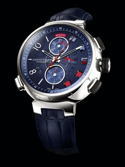 一昨年発表の「タンブール スピン・タイム」は、インデックス部分に設置したキューブが回転して数字が現れるという時計史上初のユニークな機構が耳目を集めた。今年はこの機構を応用したレガッタモデルが登場。レガッタモデルとは、ボートやヨットレースでスタートまでの時間をカウントダウンする機能が付いた時計を指すが、この新作は1~5時位置のキューブが回転し、赤から青へと変わることで5分間のカウントダウンを行う。