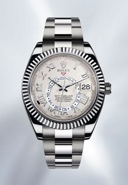 「オイスター」から誕生したニューモデルはロレックスの技術力の結晶とも言うべき時計だ。センター針でローカルタイム、24時間ディスクと赤いマーカーでホームタイムを示すデュアルタイム表示のほか、インデックス外側の小窓で月表示を行う年次カレンダーを搭載。さらにベゼルを回転させてローカルタイム、ホームタイム、日付から設定する機能を選ぶ新機構も投入された。ムーブメントに備わるものも含め、特許機構はじつに14件を数える。
