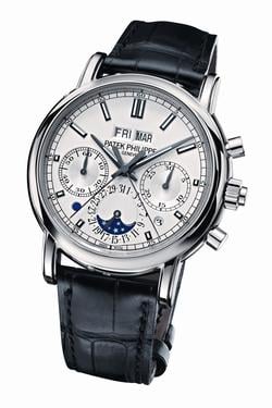 ここ6年間で8種の新型ムーブメントを開発するなど、クロノグラフへの注力が著しい近年のパテック フィリップ。2009年には6件の特許技術を投入した頂点的なムーブメントを発表したが、今年はスプリットセコンド・クロノグラフで内部機構のさらなる進化を見た。クロノグラフ針やスプリット針の操作時に生じるわずかな悪影響を低減する、2つの新機構を備えた新型ムーブメントを搭載。徹底する姿勢に最高峰と称される理由が垣間見える。