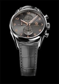 モータースポーツの躍動感とエレガンスを融合させた「カレラ」コレクションを拡充した今年のタグ・ホイヤー。サイズやカラーなど多彩なバリエーションが発表された。一押しは、一昨年発表の自社製ムーブメント「キャリバー1887」を搭載したモデル。巻き上げ効率などムーブメントのさらなる改良が図られた。アンスラサイトを基調とした落ち着いた色味にローズゴールドのインデックスとハンドがシックに映える、独特のエレガンスも魅力。