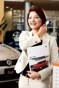 強い目力(めぢから)で、冷静に話す。入社9年目になる福田裕子さんによれば、新規来店客のタイプは主に2つ。一つは、VW車のDSG(ダイレクト・シフト・ギアボックス)などのメカを求めてくる人。もう一つは、生活の中にワーゲン車をと考えている人だという。